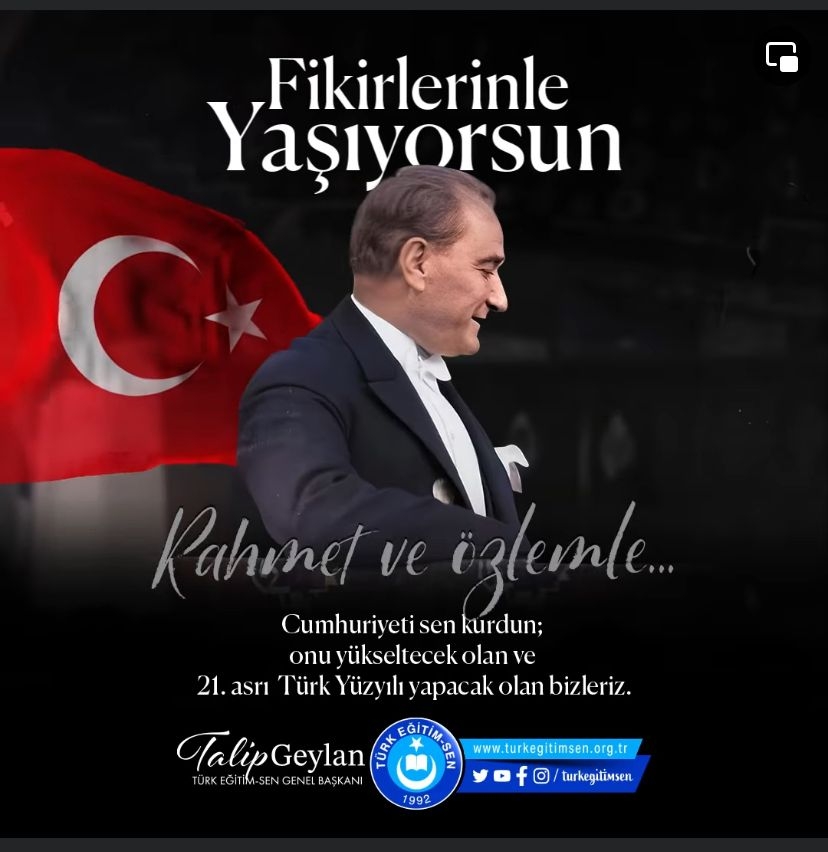 Aziz #Atatürk; Cumhuriyeti sen kurdun, onu yaşatacak, yükseltecek ve 21. asrı Türk Yüzyılı yapacak olan bizleriz.